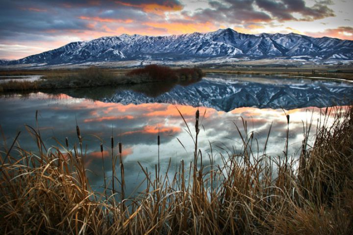 Wellsville Mountains Wilderness Area as seen from Cutler Marsh near Logan, Utah
